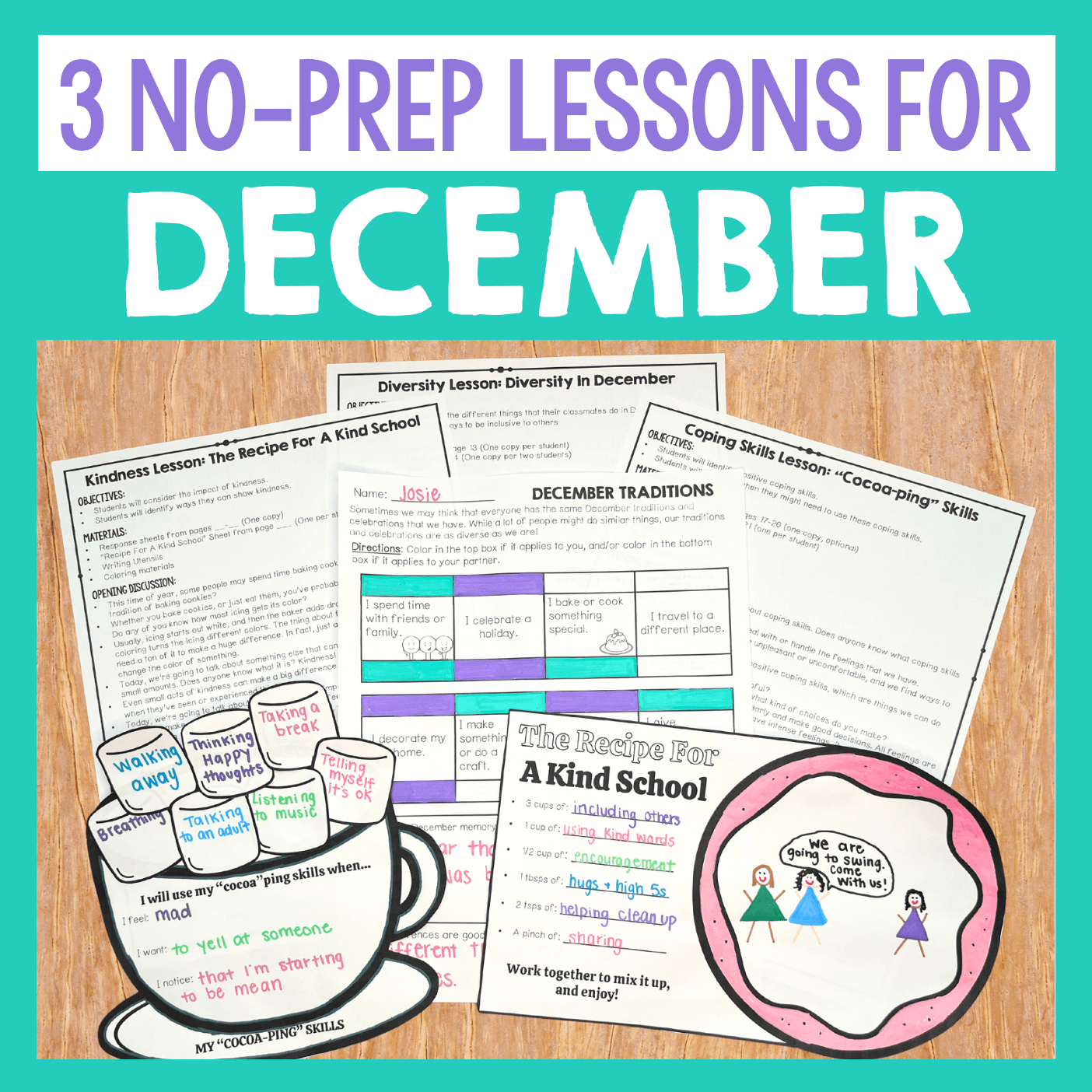 If you’re anything like me, thinking about your December counseling lessons might just feel like too much. That’s why I put together a list of 3 ideas that will make your lessons fun and engaging for your students, but will take away the stress of planning for you. Below, you’ll find activities and resources for teaching about kindness, cultural diversity, and coping skills.