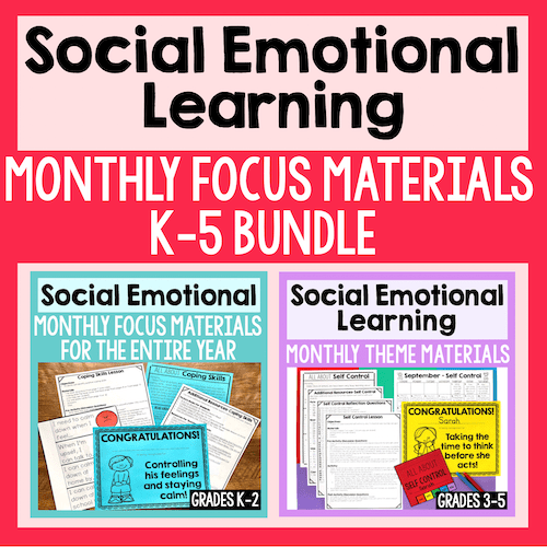 If you love the idea, but don’t have any time to put this together… don’t worry. I did all of the work for you when I created my SEL Topic Of The Month resource. It includes a no-prep lesson, daily question calendar/list, letter to families, list of additional resources, and certificates for 12 different social emotional learning topics.