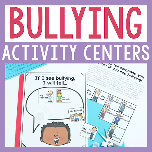 If you are looking for more activities for K-2 bullying lessons, check out these bullying centers. There are 6 centers that will help students learn what bullying is, and how they can stand up for themselves and others!
